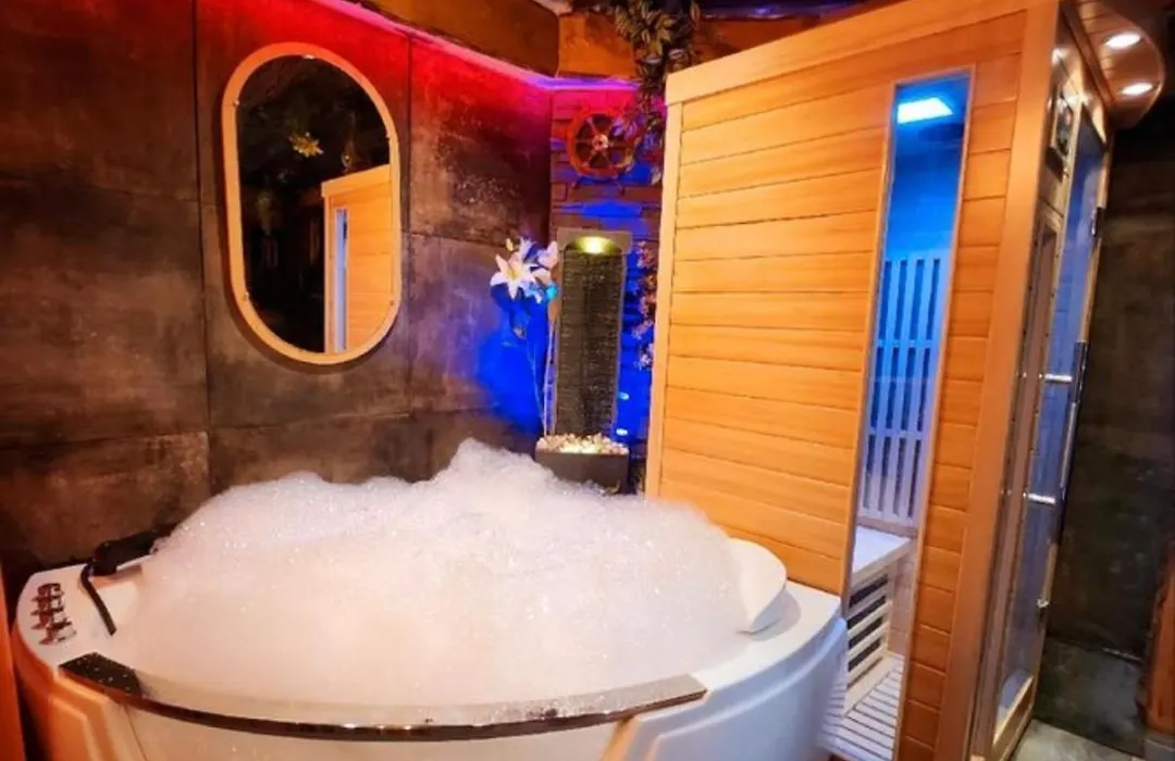 Enhancing your comfort, a spa bathtub, a hot tub, and a separate toilet can be found at this apartment. Moreover, there are dressing gowns and towels as well.